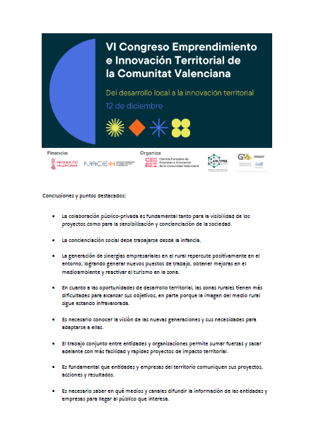 Conclusiones VI Congreso Emprendimiento e Innovación Territorial de la Comunitat Valenciana