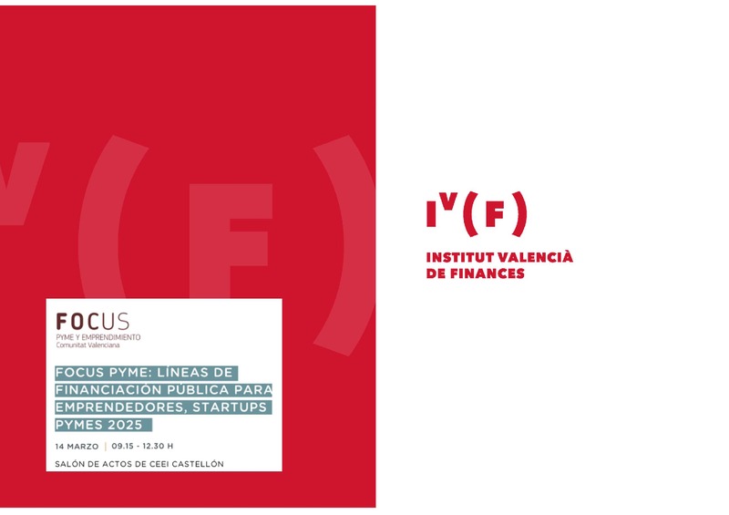 Iniciativa de CEEI Castellón dentro de Focus Pyme y Emprendimiento, promovida y financiada por la Generalitat Valenciana, a través del Instituto Valenciano de Competitividad Empresarial (IVACE), dentro de su política de apoyo al emprendimiento innovador