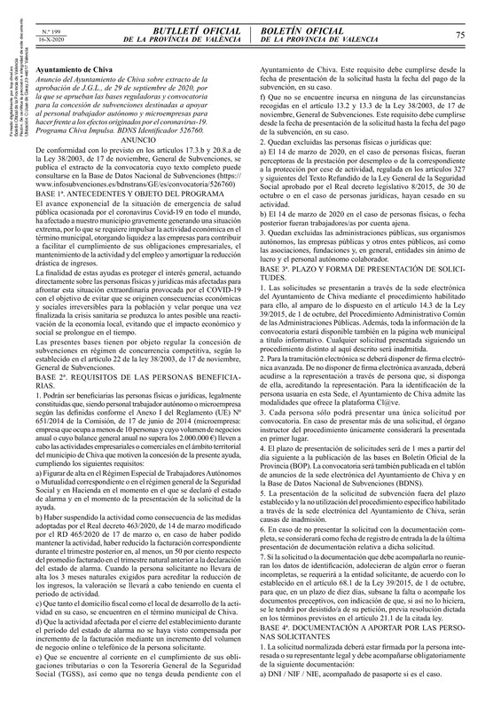 Bases Convocatoria Ayudas Chiva