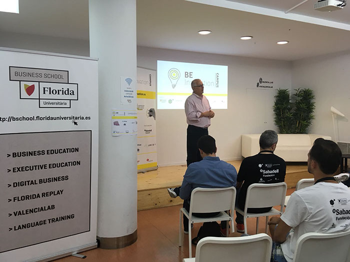 ValenciaLAB, el laboratorio de innovación de Florida Universitària acoge desde hoy Be Innovation, el primer campus de innovación abierta para resolver retos empresariales. Durante esta semana los participantes resolverán los desafíos planteados por cuatro empresas de los sectores de la salud, la educación, la hostelería y la tecnología para dar respuesta a problemas reales.