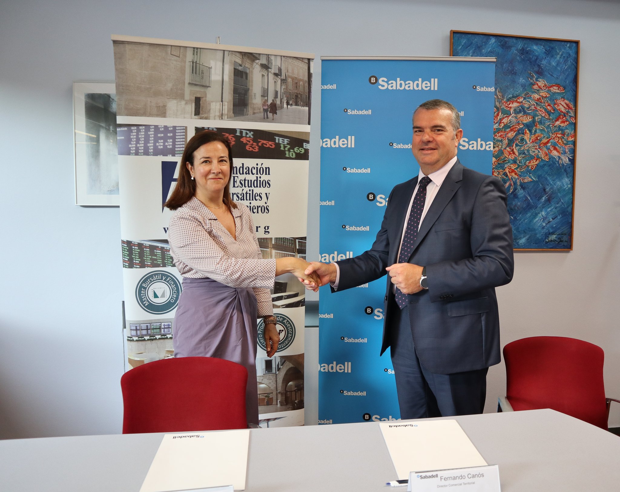 La Fundación de Estudios Bursátiles y Financieros (FEBF) ha firmado un acuerdo de colaboración con Banco Sabadell. El acuerdo ha sido suscrito por Isabel Giménez Zuriaga, Directora General de la FEBF, y por Fernando Canos Mangriñán, Director Comercial Territorial Este de Banco Sabadell.