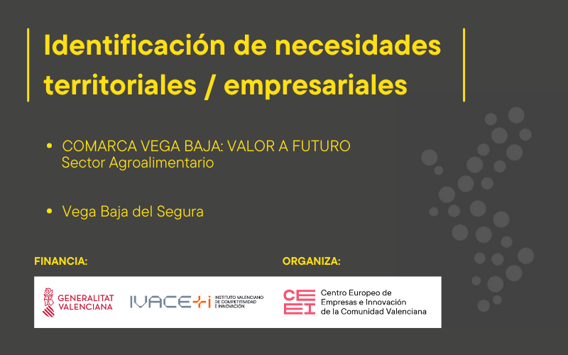 COMARCA VEGA BAJA: VALOR A FUTURO es un proyecto de exploración de nuevas oportunidades de crecimiento en el territorio vinculadas al desarrollo empresarial de la comarca de la Vega Baja, que ha recogido 11 actuaciones estratégicas atendiendo al análisis de las tendencias del sector vinculadas a la tecnología y ciencia; economía y mercado ; y sociedad y cultura que han permitido proyectar escenarios de futuro y promover acciones.
