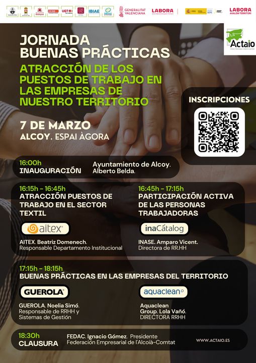 Se trata de una jornada en la que difundiremos propuestas y experiencias de las empresas del territorio, participación de los trabajadores en la empresa y herramientas de Buenas Prácticas en la atracción de talento (calidad en el empleo, medidas de conciliación y flexibilización horaria, beneficios sociales, etc.)