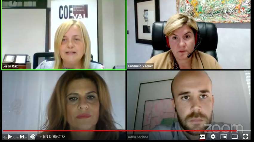Rocío Aparicio, secretaria de la cooperativa de trabajo Pantalones Blaper de Enguera, contó el caso de su empresa, que hace 30 años hubiera desaparecido de no ser por los trabajadores que la sacaron a flote creando una cooperativa que abastecía en sus inicios a las localidades cercanas. Rocío destacó que en los últimos meses se ha detectado una tendencia creciente hacia la ropa confort y habló de la unión de Blaper con otras cooperativas para fabricar artículos para hacerle frente al covid.