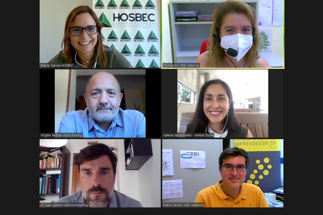 El evento, realizado en formato online, ha contado con la participación de cinco empresas, proyectos y entidades turísticas que han logrado mantenerse de manera exitosa desde que comenzó la crisis sanitaria: Virgilio Beltrán de Actio Birding; Valeria Valdebenito de Ambia Tours; Juan Castillo de GuruWalk, Juan Castro de Castro Consulting y Mayte García de HOSBEC.