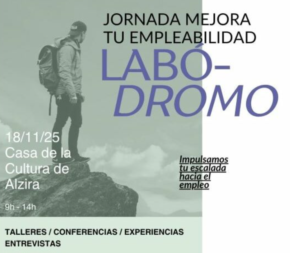 El martes 18 de noviembre, de 9:00 a 14:00 horas, en la Casa de la Cultura de Alzira, se celebrará el primer LABÓDROMO, una jornada de mejora de la empleabilidad, un evento imprescindible para todas aquellas personas que buscan empleo, desean dar un salto en su carrera profesional o impulsar sus proyectos de emprendimiento. Será un espacio innovador y transformador, donde empresas, técnicos especializados y voluntariado pondrán su conocimiento y experiencia al servicio de los participantes, acompañándolos de manera personalizada en un recorrido que puede abrir nuevas oportunidades reales en el mercado laboral.