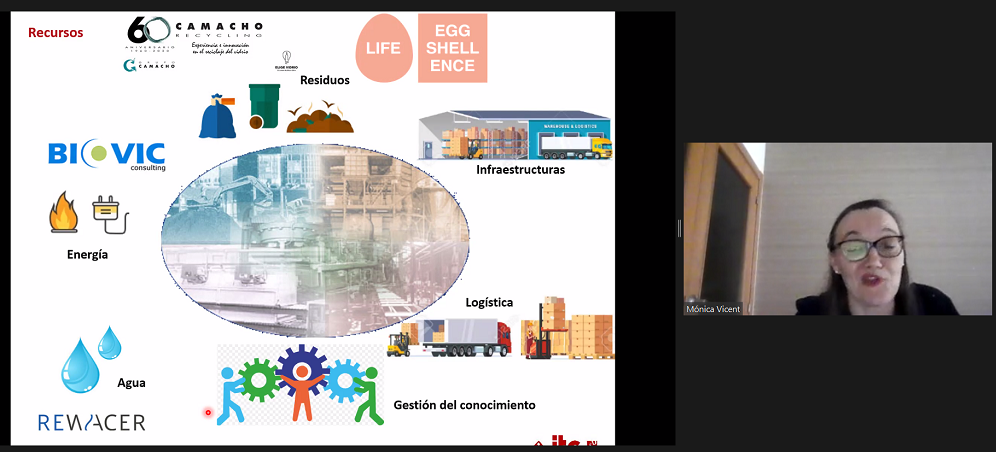 Seguidamente, se presentaron diversos casos de éxito de simbiosis industrial. Fernando Gómez y Sigfrido Allepuz, director gerente y director del Área Cerámica de Camacho Recycling, expusieron el ejemplo de su compañía en relación con los residuos de vidrio. A través de diferentes aplicaciones, la empresa opera a nivel nacional e internacional. “Sólo en el sector cerámico, en 2020 aportamos más de 50.000 toneladas de producto al sector cerámico, especialmente a atomizadoras, lo que en su conjunto supuso el 5% de nuestra facturación”, indicó Allepuz. Según Gómez, ello hubiera sido imposible ”sin una gran colaboración de la red de ‘partners’ en el sector”. El siguiente ejemplo fue el del proyecto Life Eggshellence de Maincer, también vinculado a la cerámica. Su Export Manager, Jesús Valero, explicó junto al director técnico de la compañía, Miguel Catalán, el trabajo con los residuos de ovoproductos. En concreto, se trata del uso de la cáscara de huevo en la fabricación de pavimento y revestimiento, con la implicación por ahora de 5 asociaciones y 16 empresas -ovoproductoras y cerámicas. El proyecto, actualmente en marcha, aspira a “evitar el depósito de los ovoproductos en vertedero, al tiempo que unas 10.000 toneladas anuales de materia prima dejen de extraerse anualmente de minas de todo el mundo”.