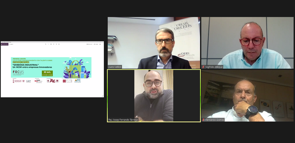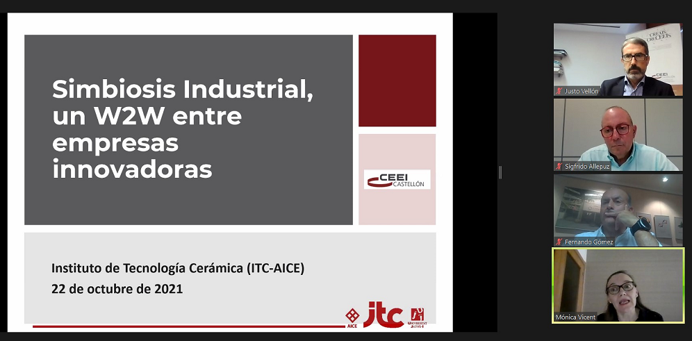 La simbiosis industrial ha sido el eje conductor del webinar organizado ayer viernes por CEEI Castellón conjuntamente con el Instituto de Tecnología Cerámica (ITC-AICE), en el marco de Focus Pyme y Emprendimiento. En el encuentro virtual se constató que la simbiosis industrial -el uso que hace una empresa o sector de los recursos de otros, como residuos, energía, electricidad, agua, logística, instalaciones, conocimientos técnicos, etc- tiene como clave la generación de beneficio entre las empresas implicadas en un mismo proyecto.