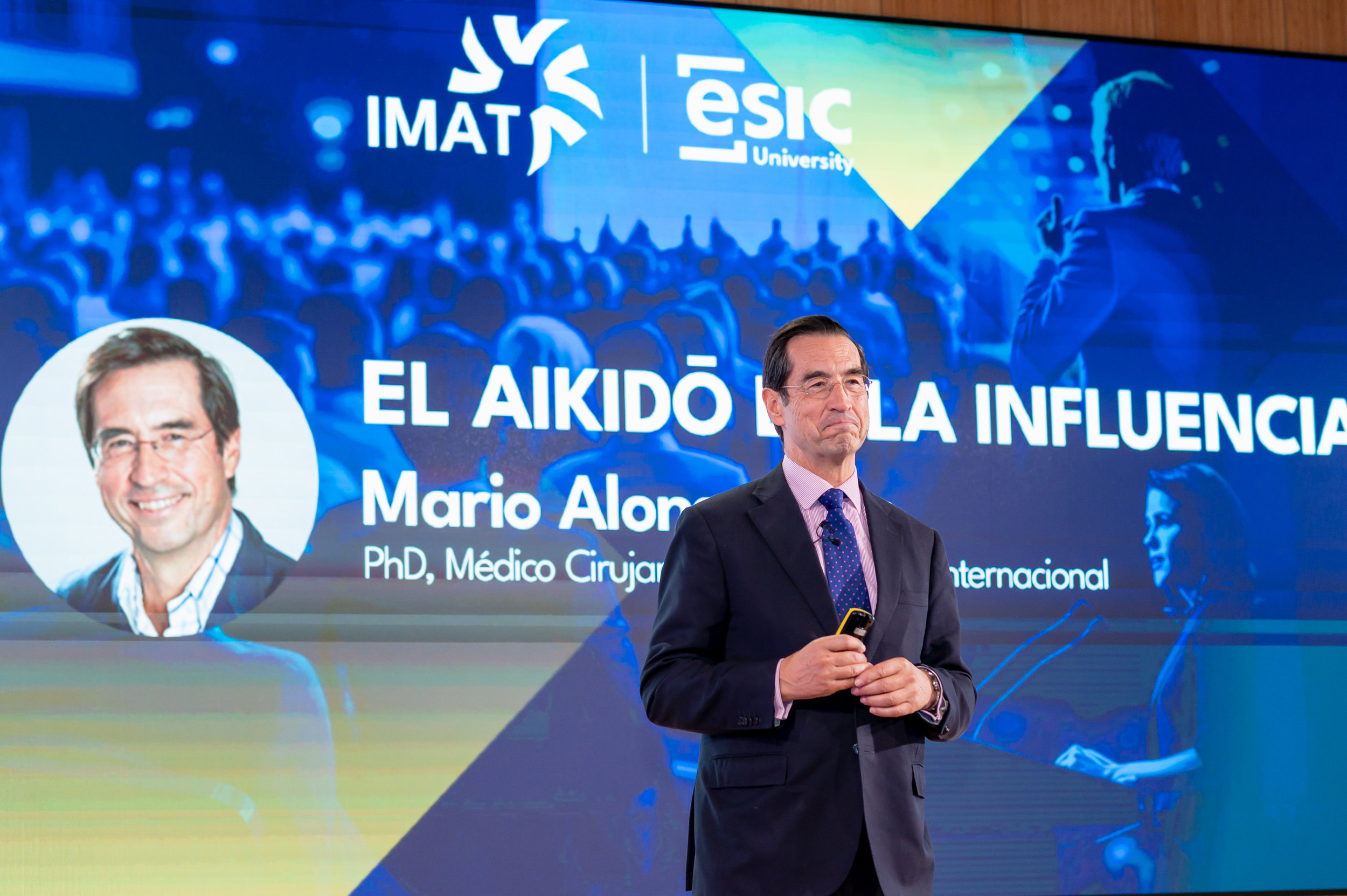 La Jornada Principal de Apertura del Congreso IMAT fue el viernes 27 de junio. Tras una cálida bienvenida de Ramón Arilla, rector de ESIC University, quien quiso dar las gracias a todos los asistentes “por acompañarnos en un momento tan especial como es esta celebración de la décima edición de nuestro queridísimo IMAT. Diez años donde hemos estado trabajando y haciendo preguntas relativas a cómo se aprende mejor y también buscando o ayudando buscar soluciones para mejorar la gestión de las instituciones con un objetivo común: transformar personas para hacer un mundo mejor.”, el Dr. Mario Alonso Puig, doctor en cirugía general y digestiva y Conferencista a nivel internacional, compartió su visión sobre la educación y la transformación personal en una interesante ponencia llamada El Aikidō de la influencia.