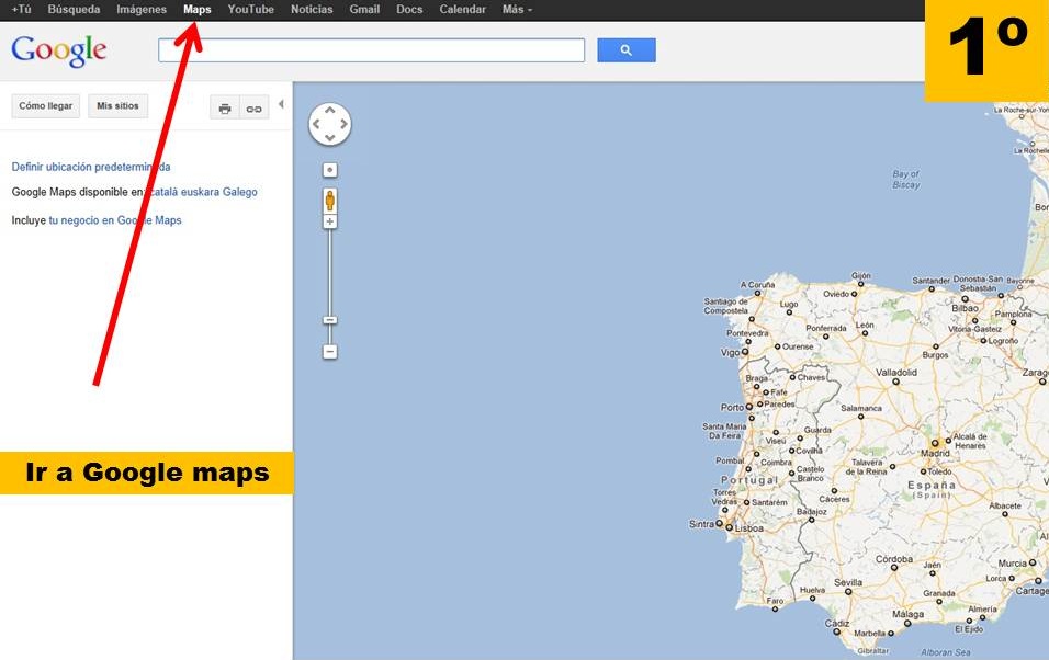 Como se indica en la figura-imágen 1, hemos de ir al google maps para, en su caso, "buscar" la situación de la entidad/empresa, si ya estuviera registrada en google, o bien poder buscar la dirección concreta de la entidad/empresa.