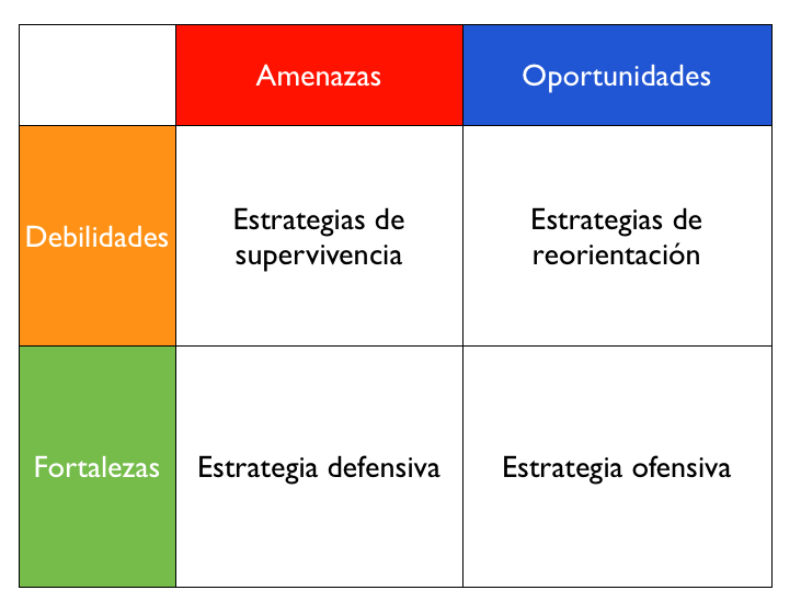- Debilidades + Amenazas= estrategia de supervivencia (limitaciones).
