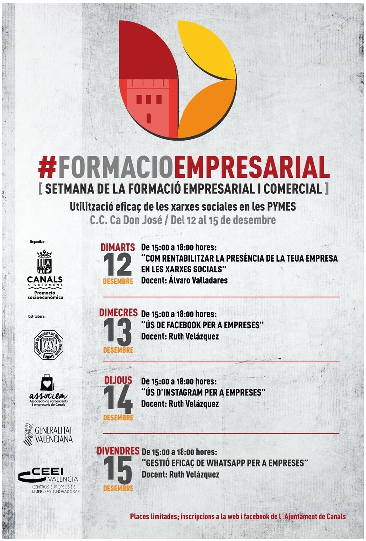 Del 12 al 15 de diciembre en Canals. Semana de Formación Empresarial y Comercial