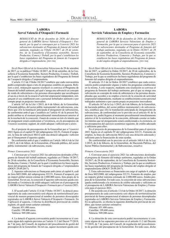 Ayudas Autónomos 2021 Comunitat Valenciana