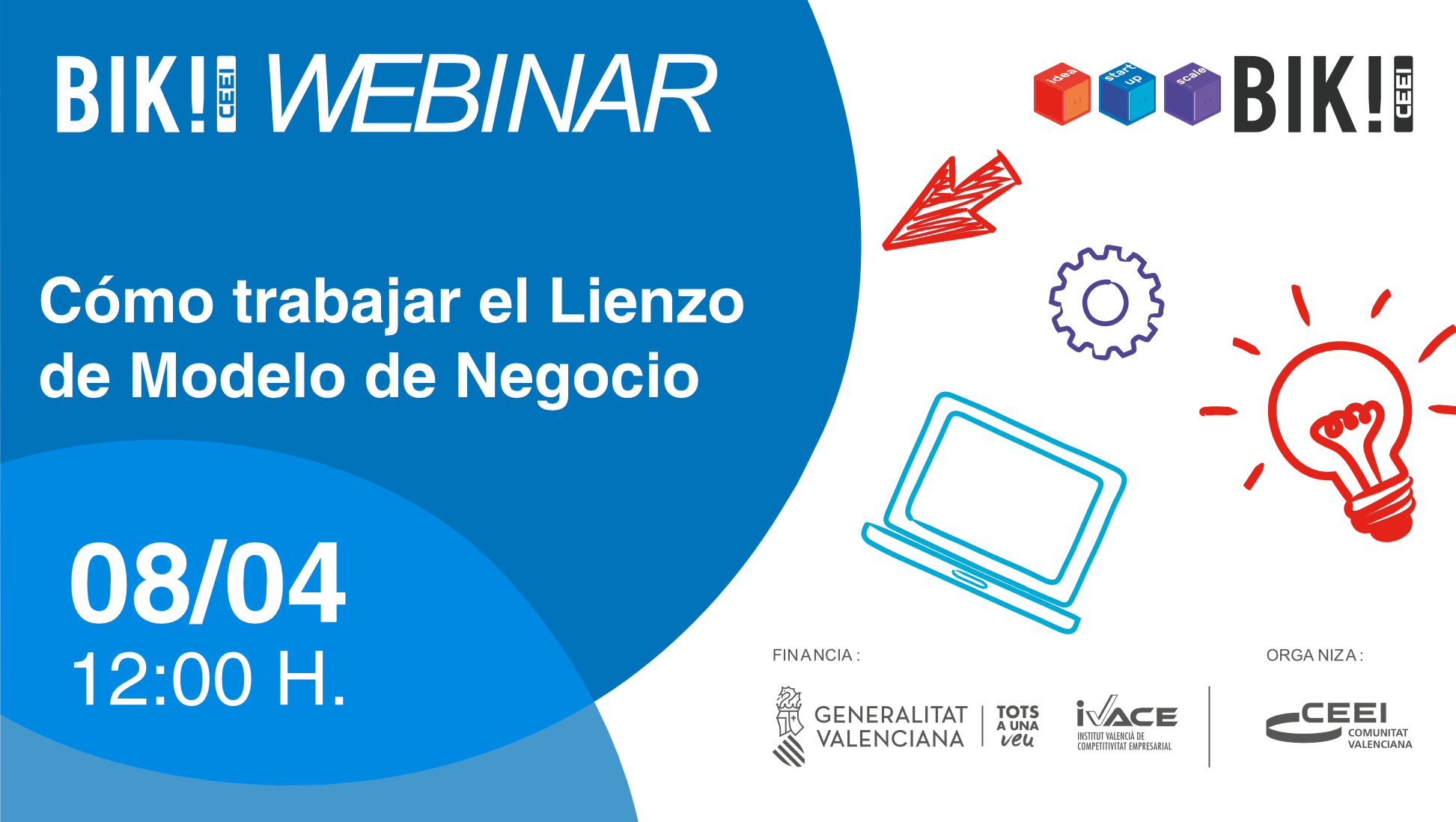 Actividad Gratuita, previa inscripción en la parte superior, iniciativa promovida y financiada por la Generalitat Valenciana, a través del Instituto Valenciano de Competitividad Empresarial (IVACE), dentro de su política de apoyo al emprendimiento innovador.