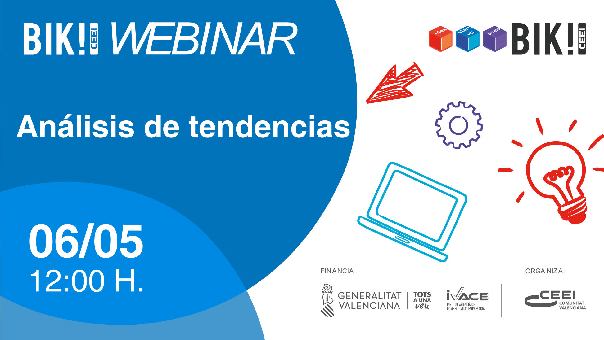 Actividad Gratuita, previa inscripción en la parte superior, iniciativa promovida y financiada por la Generalitat Valenciana, a través del Instituto Valenciano de Competitividad Empresarial (IVACE), dentro de su política de apoyo al emprendimiento innovador.