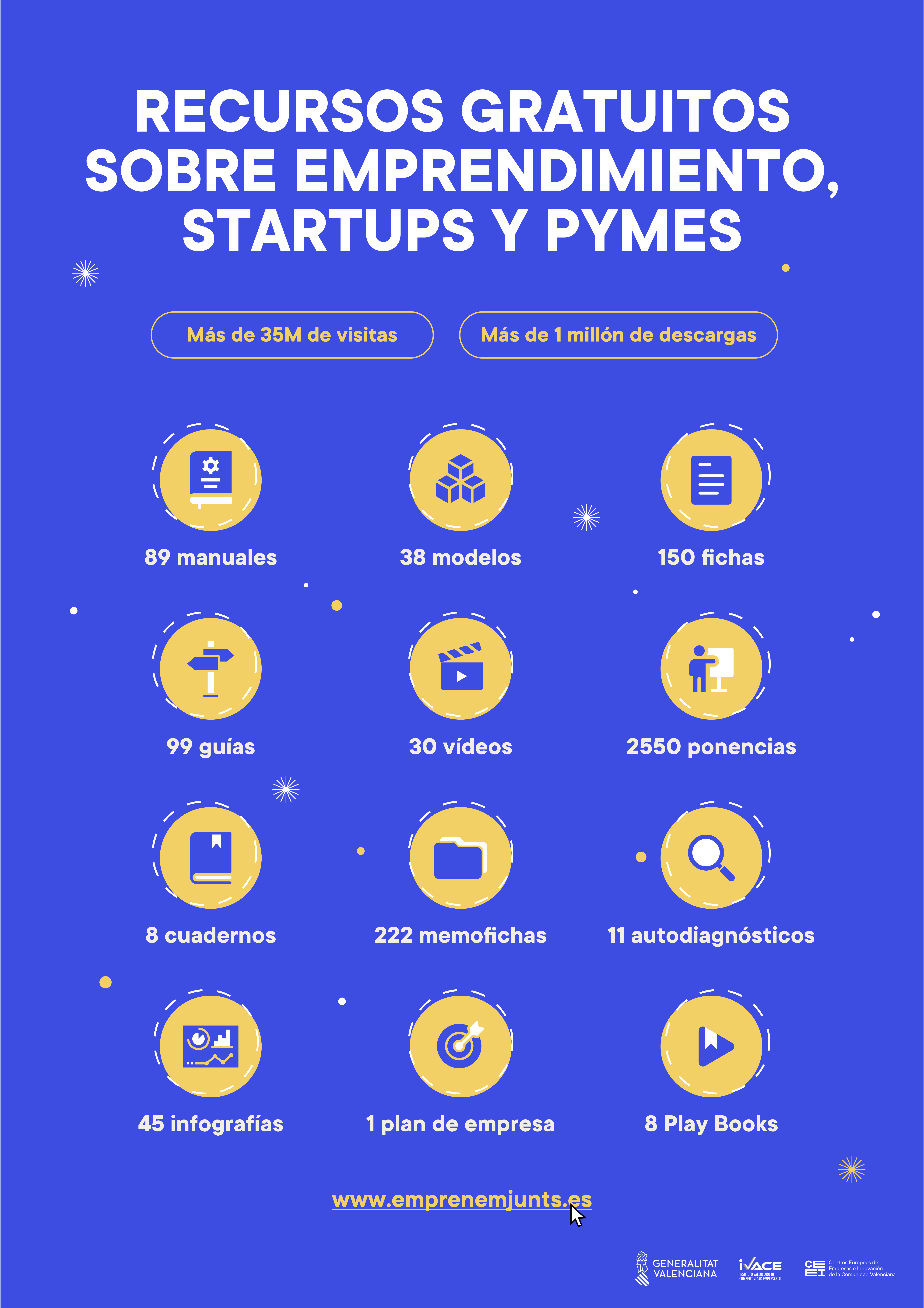 Con más de 35 millones de visitas y, más de un millón de descargas, el portal de Emprenemjunts, recoge más de 700 recursos gratuitos que, como este, están a disposición de personas emprendedoras y pymes con el objetivo de promover y fomentar el desarrollo empresarial valenciano.