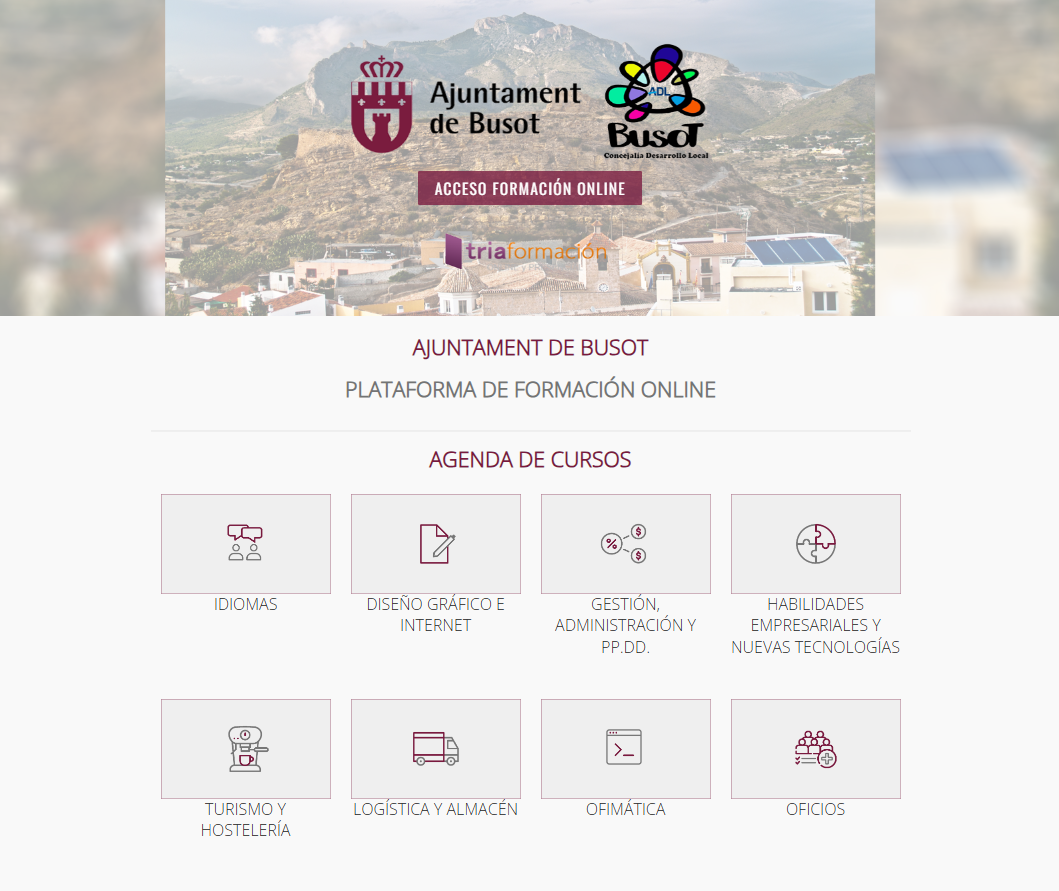 El Ayuntamiento de Busot pone en marcha una plataforma de formación online. https://bit.ly/BusotFormación totalmente gratuita para nuestros vecinos y vecinas mayores de 16 años.