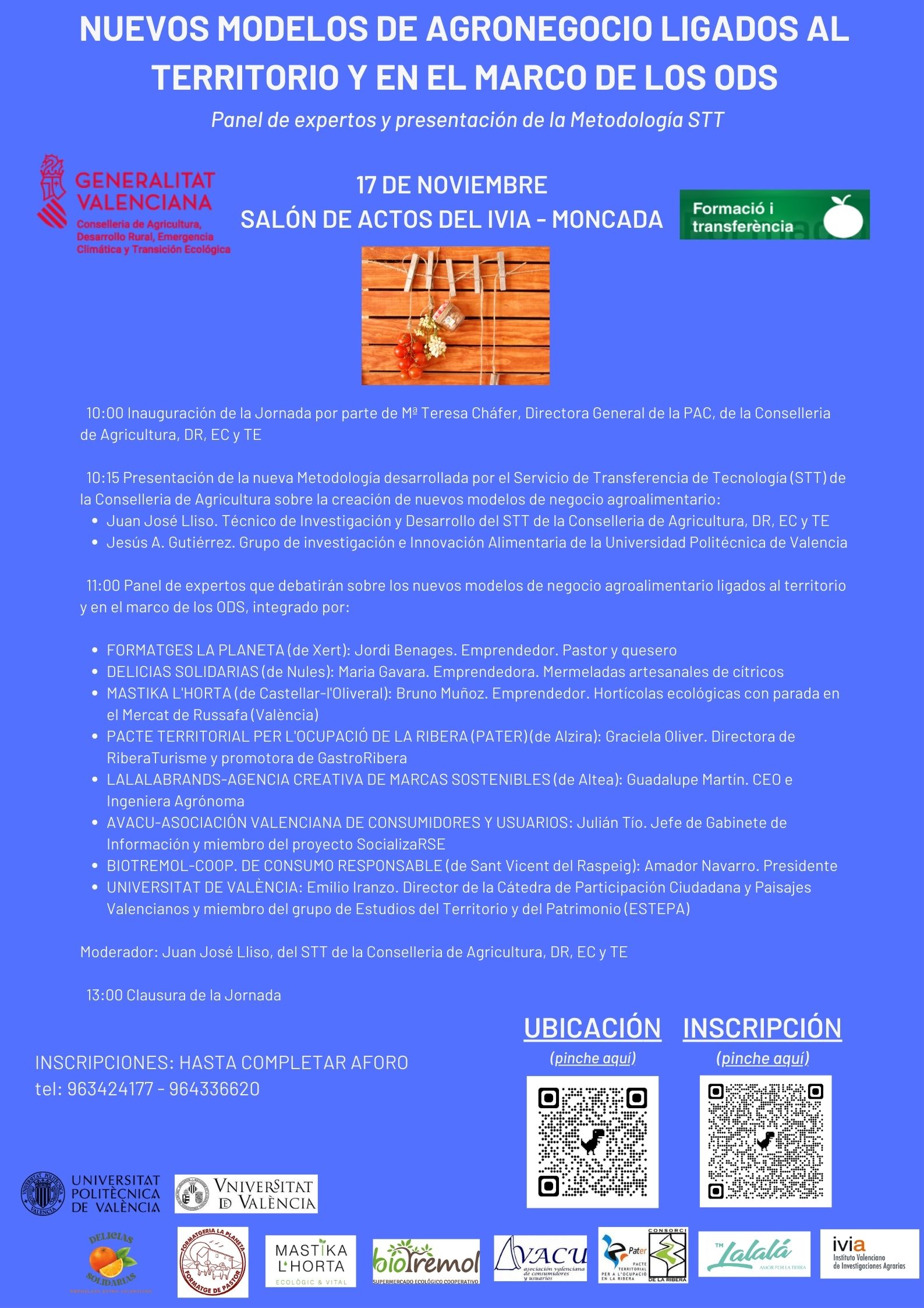 y en la cual un Panel de expertos debatirá sobre los nuevos agronegocios ligados al territorio y en el marco de los ODS, previa presentación de una nueva Metodología desarrollada por el Servicio de Transferencia de Tecnología de la Conselleria de Agricultura (STT) para facilitar la creación y validación de nuevos modelos de negocio agroalimentario.