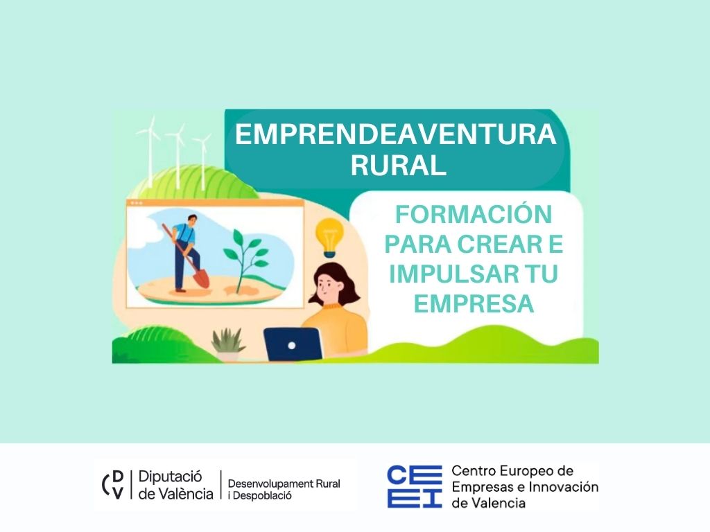 El Programa EmprendeAventura Rural es una iniciativa del CEEI Valencia, financiada por el Área de Desarrollo Rural y Políticas contra la Despoblación de la Diputación de Valencia, en colaboración con los GAL de Turia-Calderona, Rurable, Som Rurals, Caroig-Xúquer y Gandia-Albufera.