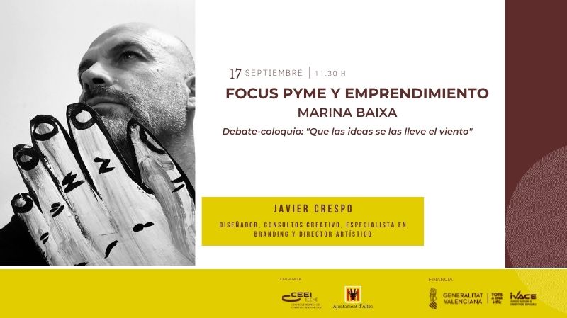 El evento Focus Pyme y Emprendimiento Marina Baixa, que tendrá lugar este jueves 17 de septiembre, cerrará la jornada con un debate coloquio en el que el diseñador y consultor creativo, Javier Crespo, argumentará, a través de los proyectos que puso en marcha desde el confinamiento, cómo es posible hacer realidad cualquier idea o proyecto si eres capaz de canalizar la energía y poner el foco en el objetivo.