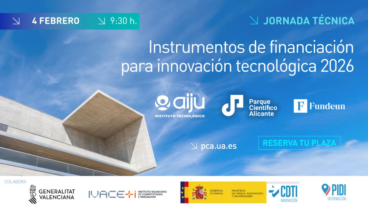 El 4 de febrero de 2026, el Parque Científico de Alicante acoge una jornada clave para empresas innovadoras que buscan financiación para sus proyectos de innovación. Durante esta actividad, se presentarán las principales líneas de apoyo económico tanto a nivel nacional como autonómico para 2026, con especial énfasis en las novedades y oportunidades para los próximos años.