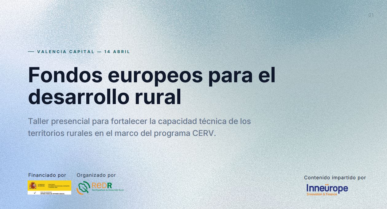 La Red Española de Desarrollo Rural (REDR) organiza un taller presencial sobre el fondo Ciudadanos, Igualdad, Derechos y Valores (CERV), dirigido a Grupos de Acción Local, gestores de desarrollo rural, entidades del tercer sector, administraciones locales y otros agentes vinculados al desarrollo rural interesados en conocer oportunidades de financiación europea.