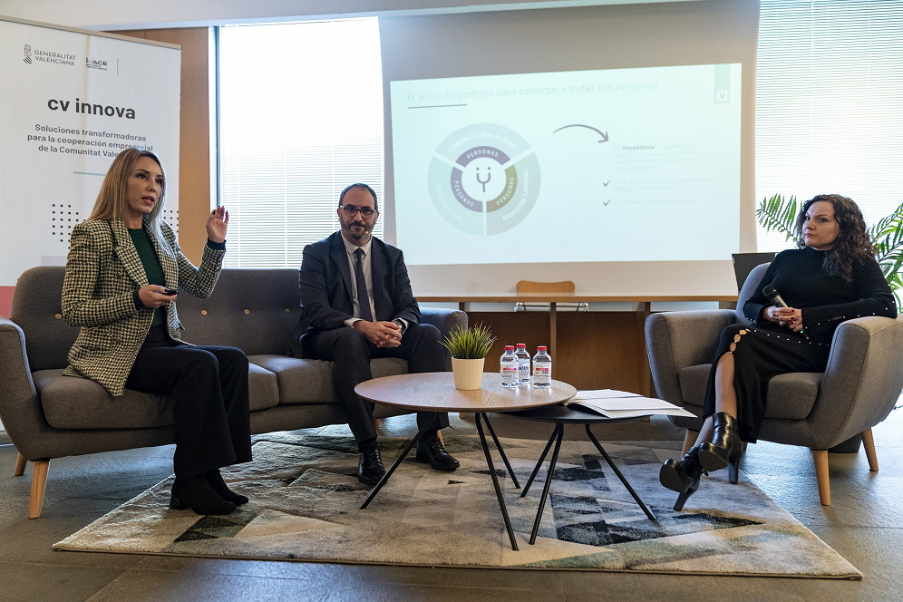 En la última mesa de la jornada, contamos con Luis Guaita, jefe de I+D+i de Keraben Grupo, y Mª Carmen Lacuesta, directora de Personas y Unidad de Negocio de Happÿdonia. En este caso el desafío era crear una plataforma de comunicación interna en la compañía. Guaita agradeció a CEEI Castellón su labor en el programa CV Innova, que calificó como “muy interesante, porque aquí nos hemos juntado varias tractoras con ganas de hacer cosas y nos aportáis una ayuda muy valiosa, acompañándonos en todo el proceso”, recordando de los 10 retos identificados en la compañía, les ayudamos a elegir el más adecuado para ese momento. “De entre todos ellos, elegimos el ámbito social, de las personas, porque queremos salir de esta crisis sin dejar atrás a las personas que forman parte de la organización y ahí detectamos una carencia en comunicación interna, por lo que buscábamos una solución útil para un conjunto de necesidades”, concluyó Guaita. Por su parte, Lacuesta apreció “la gran alineación del reto concreto con la razón de ser de Happÿdonia como plataforma digital y con la insatisfacción de los trabajadores en general en España con su puesto de trabajo, lo que es un problema de clima laboral”. Para Lacuesta, CV Innova ha sido una experiencia “fabulosa, maravillosa, una iniciativa de las que harían falta más”.