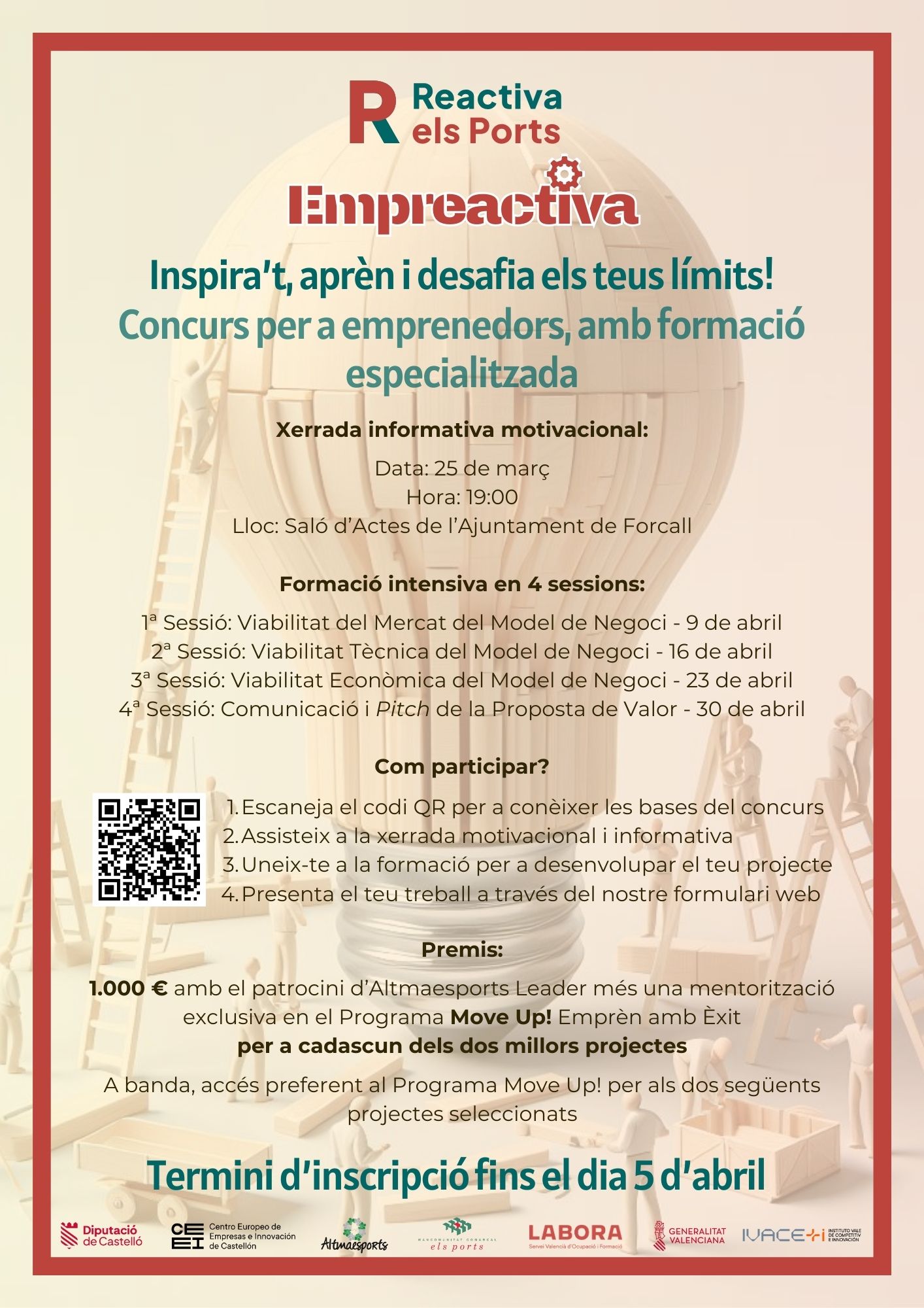 El pacte territorial per l’ocupació de la comarca dels Ports (Reactiva els Ports), el Grup d’Acció Local Altmaesports Leader i el Centre Europeu d’Empreses i Innovació de Castelló (CEEI Castelló) organitzen este concurs d’emprenedors, tenint com a objectiu coordinar iniciatives per a recolzar projectes empresarials, socials o mediambientals en els municipis que integren el seu territori, promovent d'esta manera la innovació, la generació d'ocupació, la retenció de població i el foment d'una cultura emprenedora que siga respectuosa amb l'entorn, i que incidisca directament a les comarques de Els Ports i Alt Maestrat.