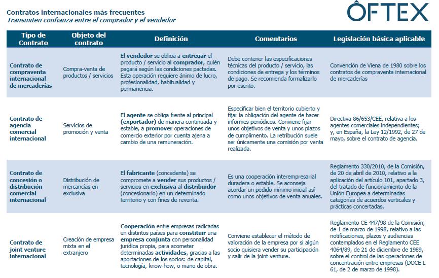 Tipos de CONTRATOS INTERNACIONALES más frecuentes